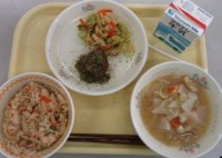 高野豆腐のそぼろごはん たこやきふうがんも キャベツのレモン風味 大根のみそしる...