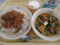 豚すきどん ピリ辛スープ 杏仁フルーツ ぎゅうにゅう【まち☆ベジ:大根】 今日の...