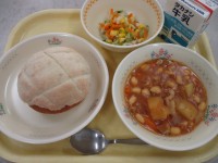 バジリコスパゲティ ミネストローネ ガンバのチーズケーキ【学芸会給食4年生】【ま...