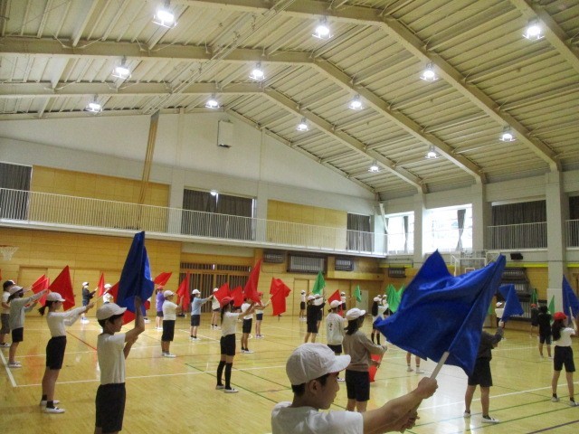 今週より運動会特別時間割が始まりました。運動会に向けた練習も本格化し、これから学年全体での練習も増えていきます。体育館をのぞいてみると早速6年生が学年全体でフラッグを使った表現運動に取り組んでいました。また、今日は久しぶりにクラブ活動がありました。秋らしく気持ちのよい晴天のもと、校庭では運動系クラブの児童が元気一杯に体を動かしていました。