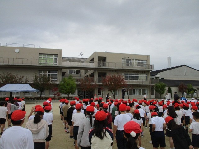 今朝は運動会に向けて、全体での並び方や体操の隊形への移動の仕方などを練習しました。また、皆でラジオ体操の動きも確認しました。学級閉鎖のために全校児童の数が少なく少し寂しい全体練習でしたが、皆元気に動きました。来週は全学年がそろって練習できることを切に願っています。
