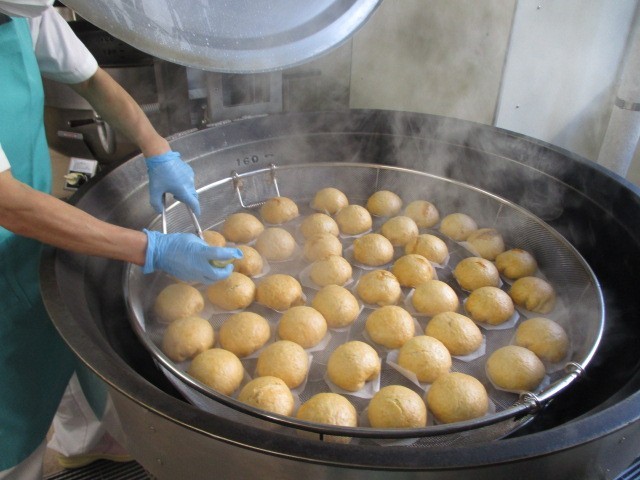 今日は、給食室の愛情たっぷりの新メニュー「手作りピザまん」です!今回は、生地に混ぜ込むトマトソースから、中のジューシーな肉あんまで、全て給食室で一から手作りしました。生地を丁寧にこねて発酵させ、その間に肉のあんを仕上げて、一つひとつ包んでいきます。給食室は時間との真剣勝負。限られた時間の中で、力強く生地をこね、手際よく成形していく調理員さんの姿は、まさにプロの仕事人です。釜とオーブンの2つを駆使して約450個を作りました。
