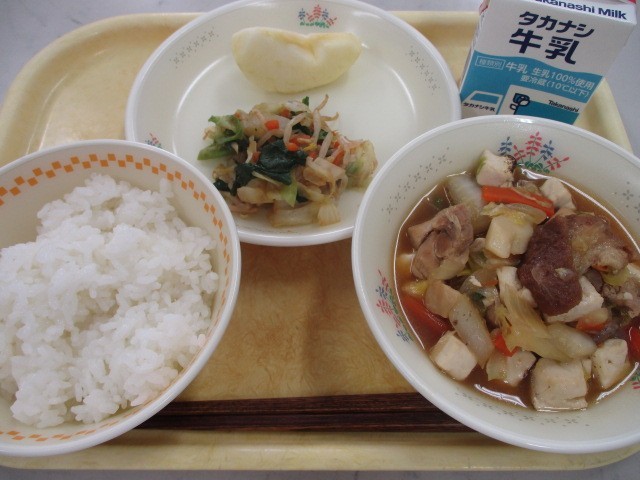 ごはん 愛知県郷土料理ひきずり ほうれんそうのおかかあえ りんご(王林) ぎゅうにゅう