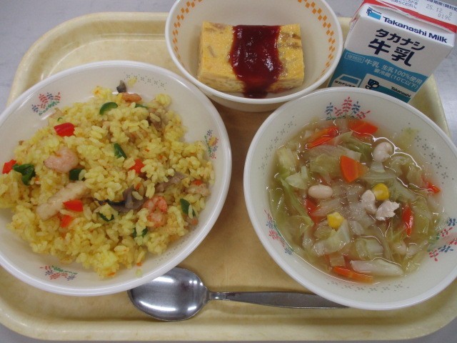 パエリア スパニッシュオムレツ コンソメスープ ぎゅうにゅう