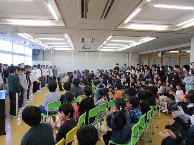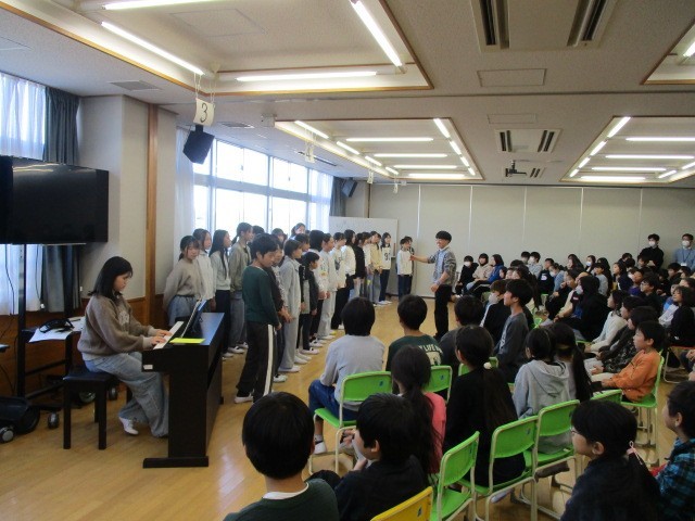 5,6年生の有志児童がメンバーの「ズシ唱団」が、本日昼休みに第3回コンサートを開催しました。会場のランチルームは1年生から6年生の子供たちで一杯で、たくさんの立ち見が出るほどです。前回の第2回コンサートはメンバーが6年生だけでしたが、新たに5年生の仲間を加え、歌声もより一層バージョンアップしました。今回は「変わらないもの」「ことばを追い越して」の2曲を披露し、終わった後は会場からの大拍手に包まれました。今後の目標は大きくコンクール出場とのこと。進化が止まらないズシ唱団です。