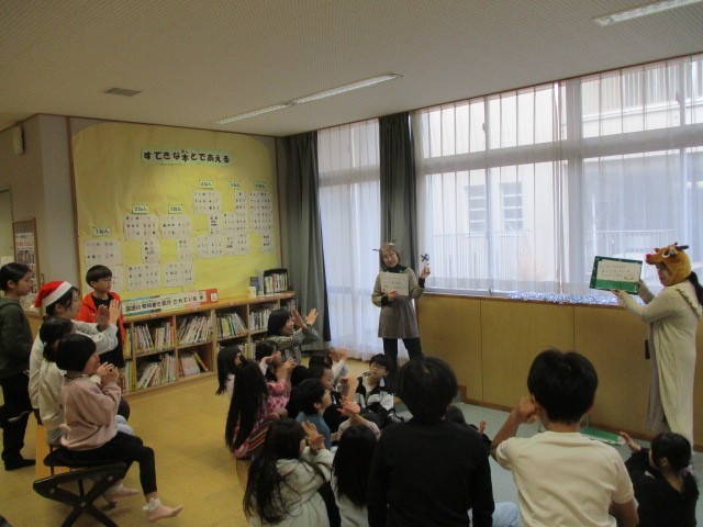 今日のお昼休みに保護者の方々による読み聞かせの会がありました。クリスマスが近いということで読み聞かせだけでなく、クリスマスにちなんだ音楽のクイズやなぞなぞで子供たちを楽しませてくれました。読み聞かせの取組は子供たちの豊かな読書ライフを習慣付けていく意味で、今後も長く大切にしていきたい活動です。本日お忙しい中ご協力いただいた皆様には心よりお礼申し上げます。