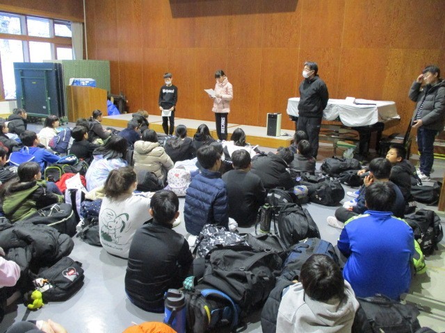 川上村移動教室2日目の朝を迎えました。外の気温はマイナス10度だそうで、軒先には東京では見られないような大きなつららが垂れ下がっていて子供たちも驚いていました。朝食の後閉村式を行い、宿舎の方にお世話になった2日間のお礼を伝えました。宿を出発し、2日目のスキー教室へと向かいます。