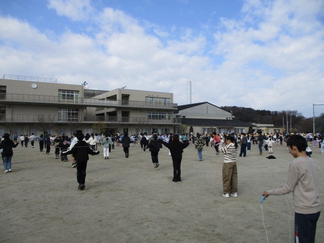 雪やグランドコンディションの影響で延期されていた縄跳び週間が始まりました。中休みに全校児童が外に出て、それぞれに目標をもって縄跳びにチャレンジします。今日は比較的暖かな陽気となり、子供たちも気持ちよさそうに縄を跳んでいました。寒さに負けない強い体づくりを目指し、縄跳びで体力向上を図っていきます。