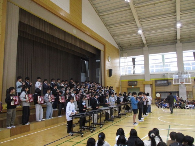 6年生を送る会の最後は、6年生からのお返しの合奏でした。さすが6年生と思わせるような息のぴったり合った美しい合奏に、会場全体から大きな拍手が送られました。