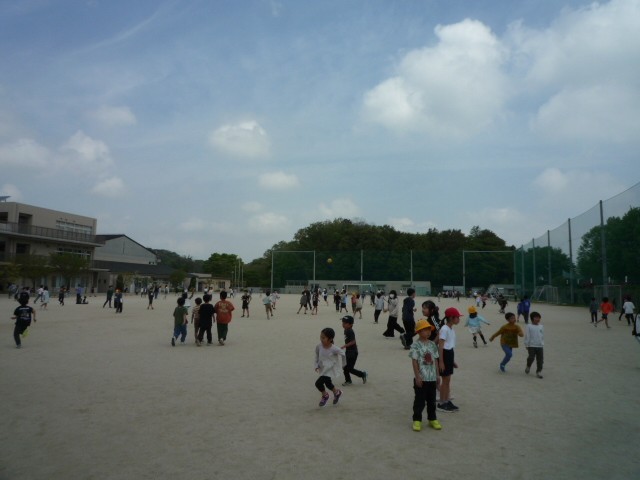 本日の1年生を迎える会を経て、中休みから1年生が校庭デビューをしました。早速黄色い帽子をかぶった1年生がいろいろな遊具で遊んだり、上級生と一緒になって鬼ごっこをして遊んだりするほほえましい様子が見られました。