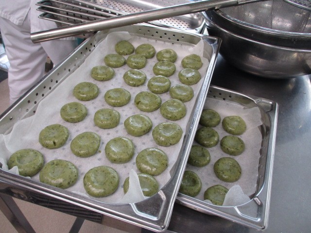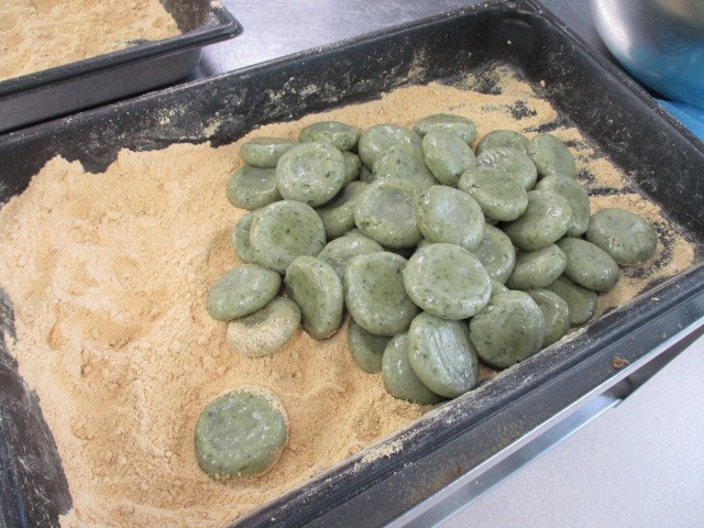 今日は、きれいな緑色の「よもぎだんご」に、香ばしい「きなこ」をたっぷりまぶしました。