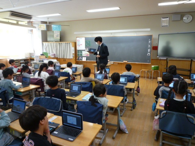 今朝はかなりの大雨になりましたが、いつも通り元気な子供たちの挨拶の声が返ってきました。体育館では、2年生と5年生がシャトルランを合同で行うということで、お互いに「よろしくお願いします!」と挨拶を交わしていました。上級生が下級生のいろいろな活動を手伝うことは、図師小学校で日常的によく見られます。今日も2年生の走りを応援する、温かい5年生の声援がたくさん聞かれました。教室では1年生が、ICT支援員の方にタブレットの使い方を教わり、ログインやログアウトの仕方をしっかりとマスターすることができました。これからタブレットを使う機会がどんどん増えていきそうです。