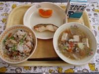 じゃこチーズトースト 青菜のソテー 夏野菜たっぷりコンソメスープ 牛乳