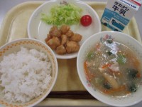 ガパオライス フライビーンズ トマトとレタスのスープ 牛乳