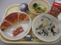 ≪立春献立≫ 菜の花色ごはん 笹カマボコの若草揚げ じゃが芋のすりながし汁 菜の花の辛子和え 牛乳