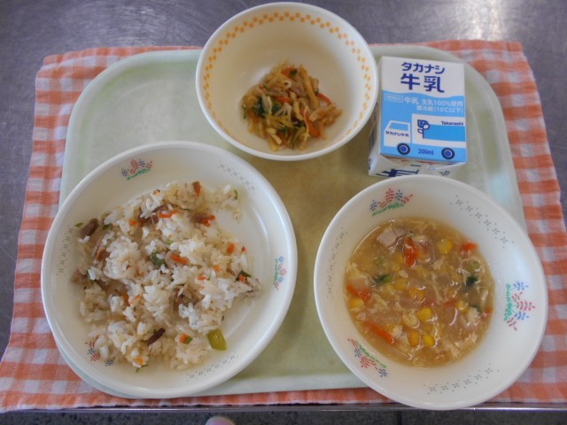 食べるときにポテトのカリカリを感じられるように、半分は野菜と一緒に混ぜて、残りの半分は上にのせて、教室で食べる直前に混ぜてもらうようにしています。