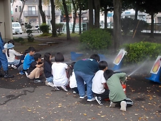 消防の役割のお話を聞き、体験学習をしました。
