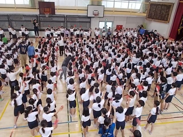 団長の大きな声に合わせて、全校の子供たちも大きな声で歌いました。