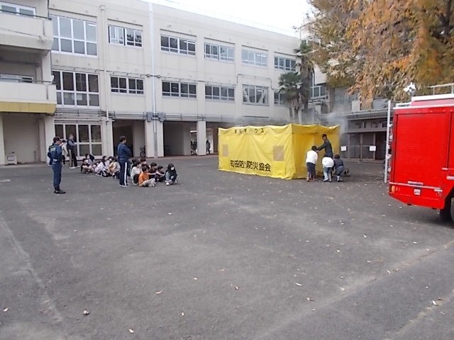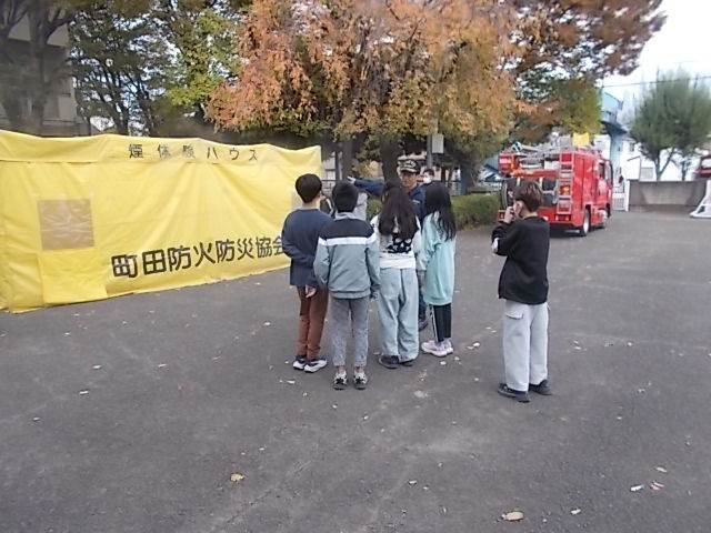 今月の避難訓練後に、5年生が町田消防署のご協力により、煙体験を行いました。
