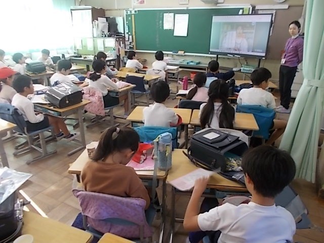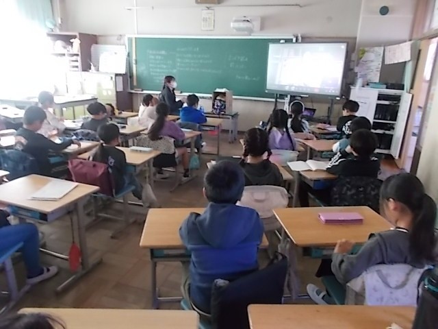 今日の全校朝会はオンラインで行いました。