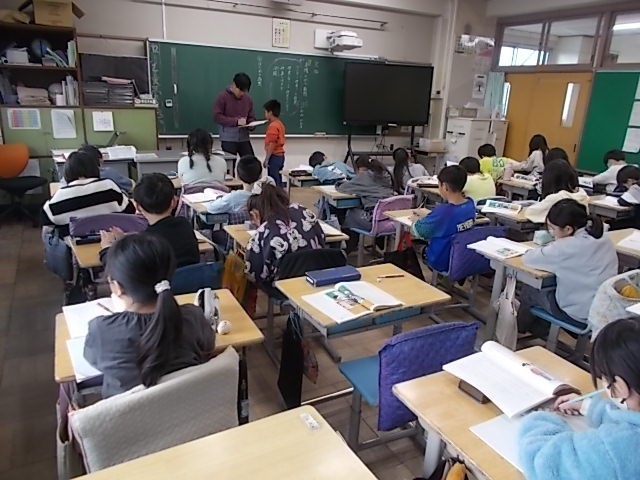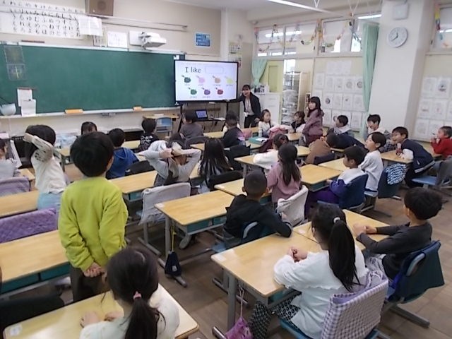 1年2組では、英語活動をしていました。楽しく学んでいました。