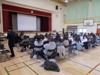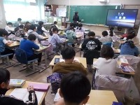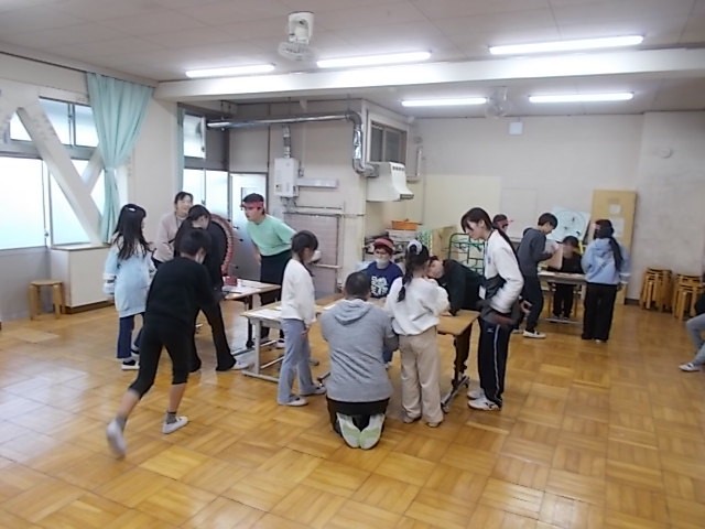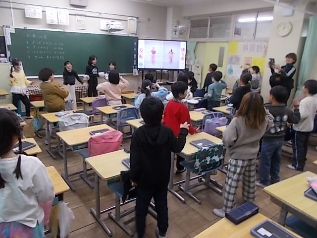 2年3組ではグループの発表をしていました。その中で、全員でダンスをしているところです。