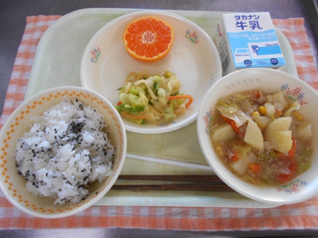 12月18日の給食 公開日 2025/12/19 更新日 2025/12/19 給食 <献立>牛乳ごま塩ごはんじゃがいものみそバター煮和風サラダ果物(みかん)みかんは12月から1月ごろに収穫量が増えていきます。寒さが厳しくなり始める季節に、みかんの旬が始まります。旬を迎えたみかんは甘みが強く、果汁も濃厚でおいしかったです♪