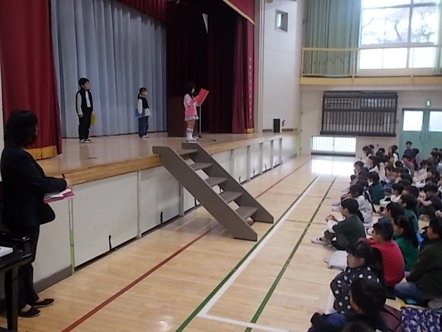 終業式の児童代表は2年生です。