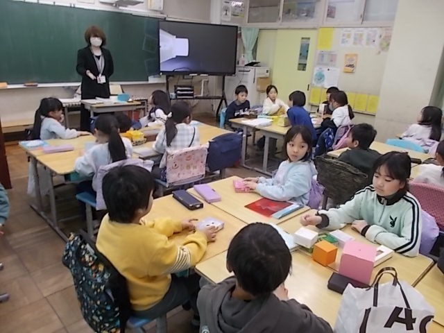 算数の「はこの形」の学習です。面や面の形、数の学習です。