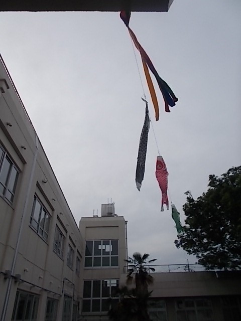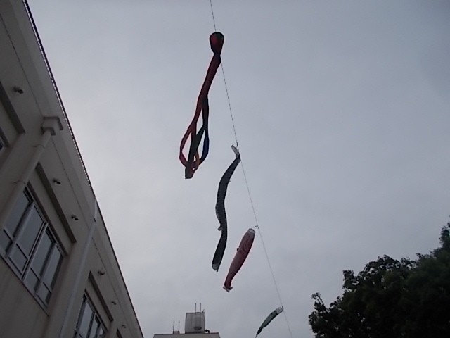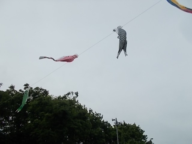 しかし、風が強くて、真鯉と緋鯉が外れてしまいました。