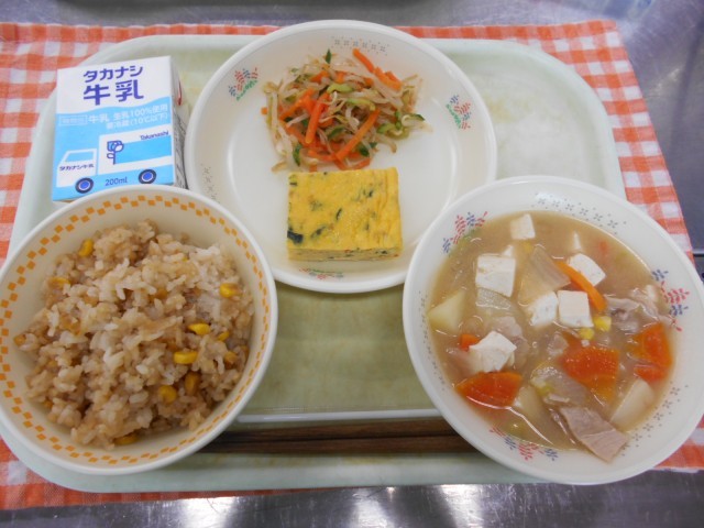 どさんこ汁のじゃがいも、にんじん、たまねぎ、とうもろこし、バターは北海道産のものを使用しました。