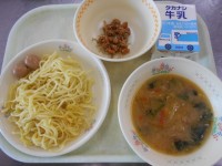 10月8日の給食 公開日 2021/10/08 更新日 2021/10/08 給食 今日の給食は、 ・豚すき丼 ・キャベツとコーンのサラダ ・いりこと大豆の甘辛和え ・牛乳 でした。 いりこと大豆の甘辛和えは、よく噛んで食べるためのカミカミメニューです。よく噛んで食べることは、歯を強くするだけではなく、頭の働きをよくしてくれます。 給食