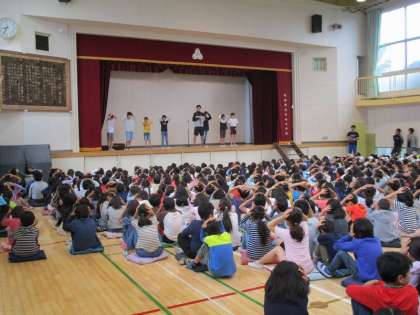 その後、プールでの決まりや笛が鳴った時の行動の仕方を全校で確認しました。