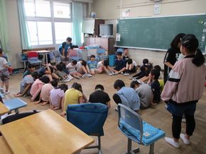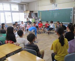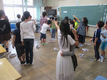 自己紹介をしてから異学年の児童と楽しく遊びました。