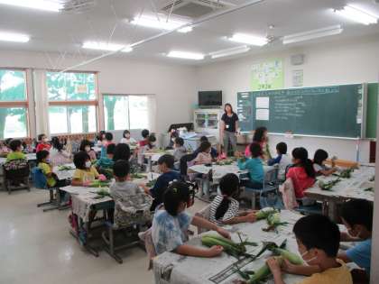 2年生 とうもろこしの皮むき