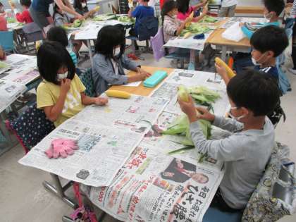 今日の給食のとうもろこしは、2年生たちが頑張って皮むきをしてくれましたものです。