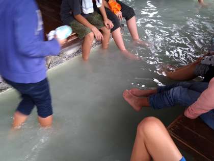 6年生 日光移動教室2日目8 公開日 2019/07/26 更新日 2019/07/26 お知らせ 源泉で楽しんだ後は、足湯につかります。初めは熱くて誰も浸けられませんでしたが、終わりにはこの通りです! 6年