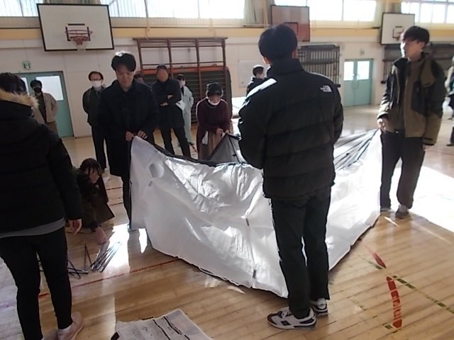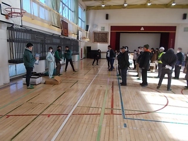 市の職員、地域の方々、学校の教職員が協力して、それぞれの訓練を行いました。