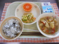 アルファ化米など学校の防災備蓄食品は、期限が切れる前に給食などで有効に活用し、ローリングストックをしています。