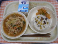 <献立>牛乳しょうゆラーメンピリ辛漬け米粉のさつまいも蒸しパン6年生リクエストメニューで焼きそばと同率2位に選ばれたのは「ラーメン」でした!今日は焼き豚や野菜をたっぷり入れた栄養満点のしょうゆラーメン...