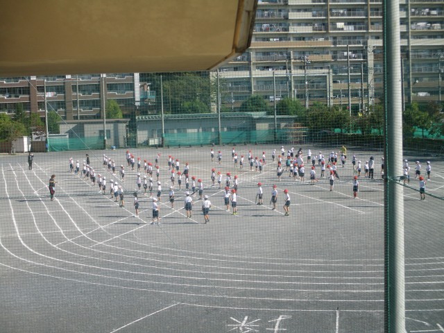 ・1年生 運動会に向けて表現運動の立ち位置を確認している様子