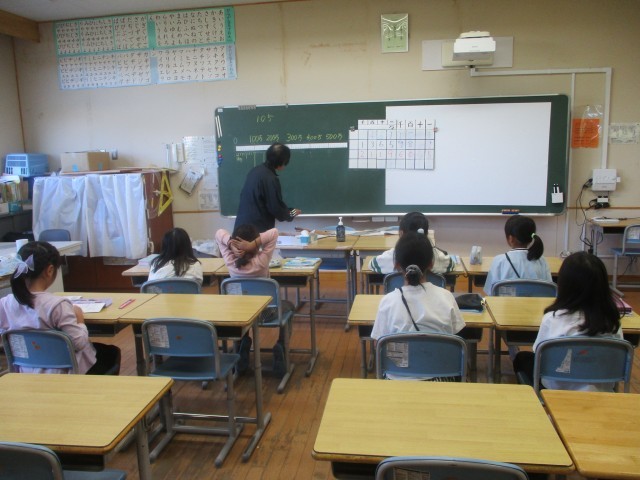 ・3年生 少人数で「大きな数」について学習している様子
