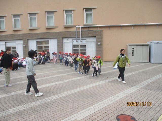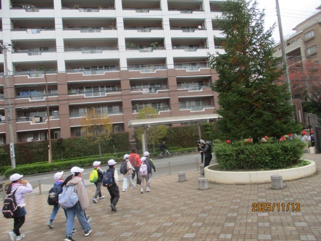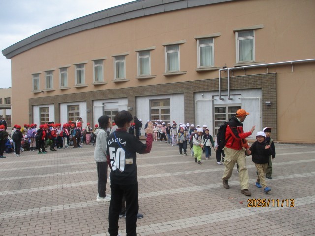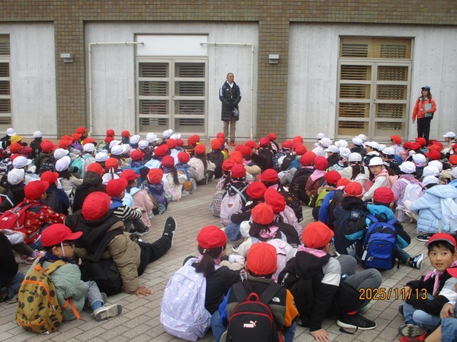 少し寒い朝になりましたが、みんな元気に登校し、小山内裏公園に出発しました。