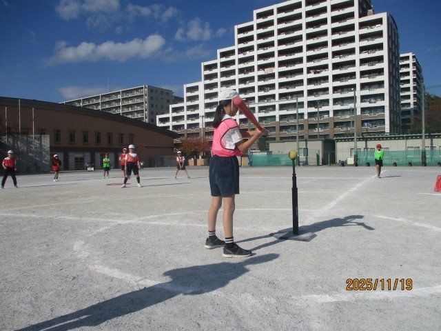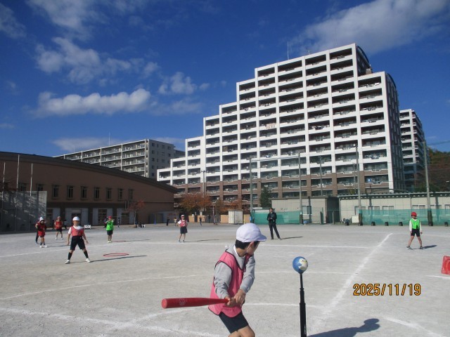4年3組 Tボール(ゲーム)の授業の様子
