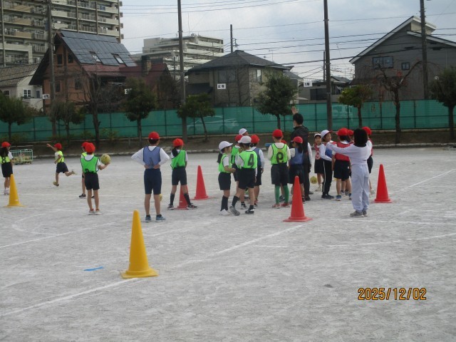 3,4組 体育 キックベースボール型ゲームの学習の様子