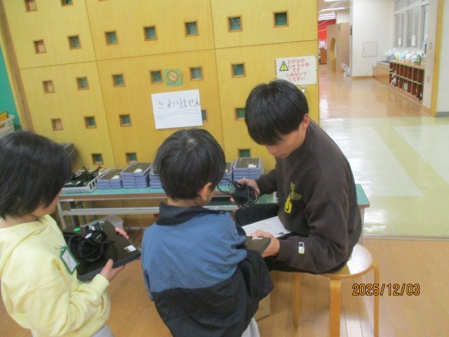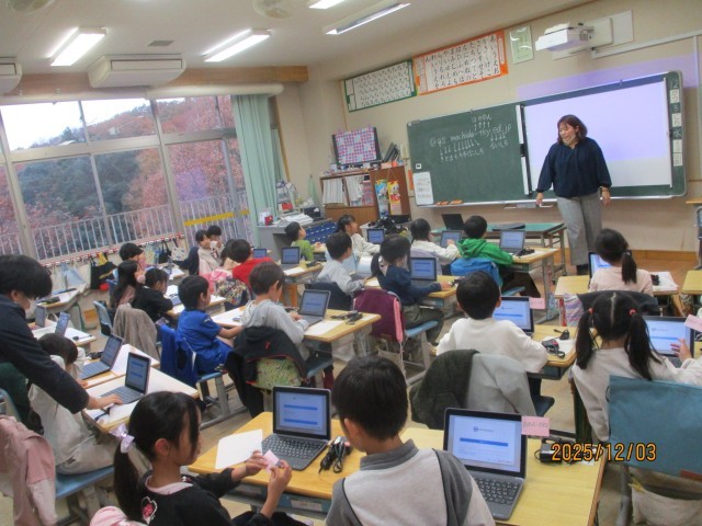 12月から新しいクロムブックが配布されることになりました。本校でも昨日の全校朝会でクロムブックの取り扱いに関する注意事項を紹介した後、本日から配布が始まりました。1年生は各クラス、教師や補助員が3~5名ついて初期設定のお手伝いをしました。自分でパスワードなどを入力して立ち上がると、みんな嬉しそうにしていました。