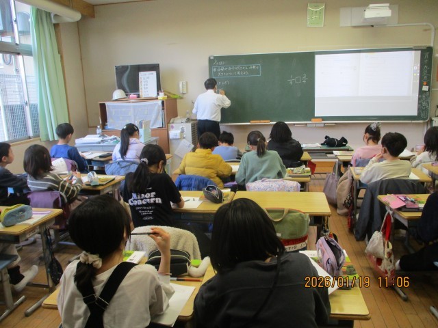 3,4,5組 3クラスを4展開し、算数の分数の計算学習をしている様子