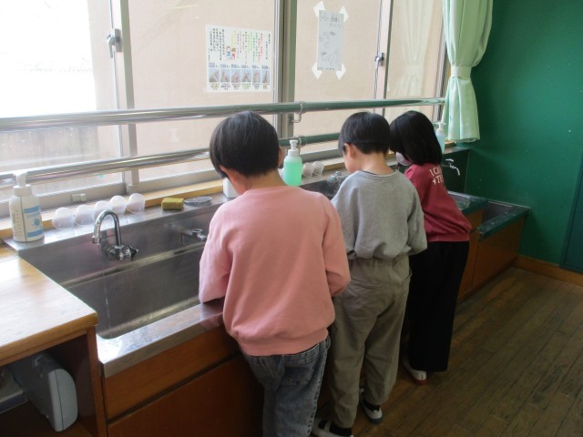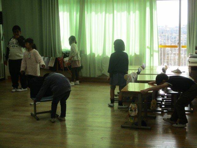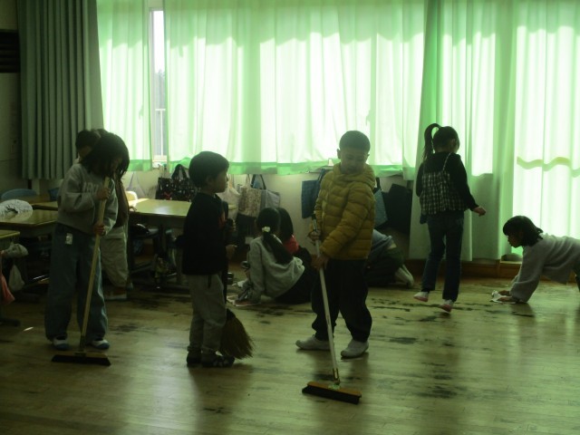 手洗い場、教室、廊下、机移動をそれぞれ分担し、楽しそうに取り組んでいました。