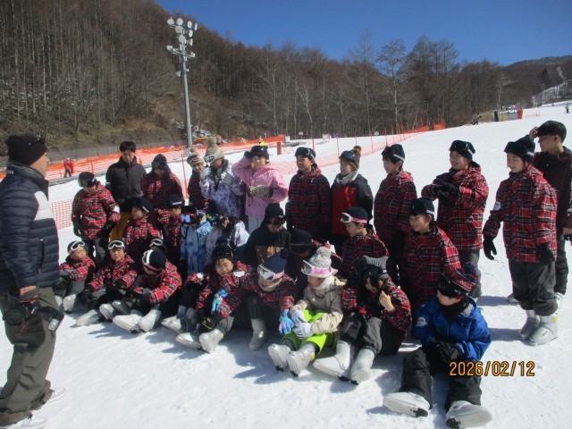 昼食においしいカレーを食べ、グループごとに分かれスキー教室を行いました。