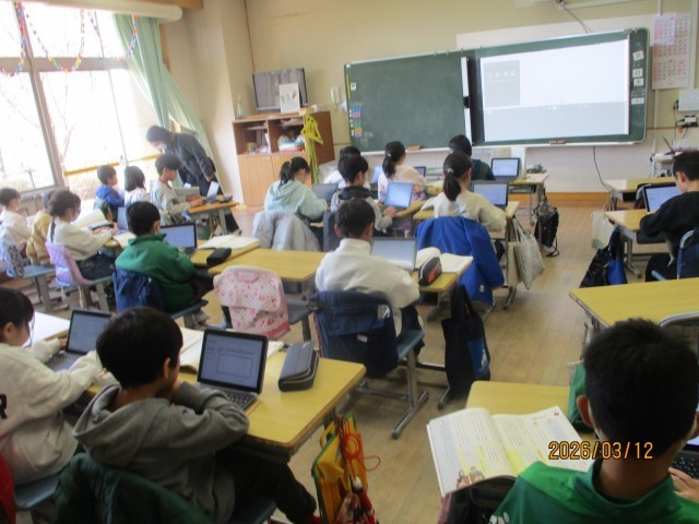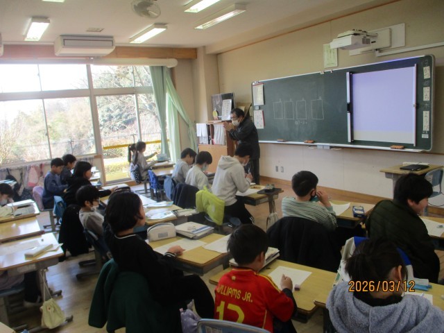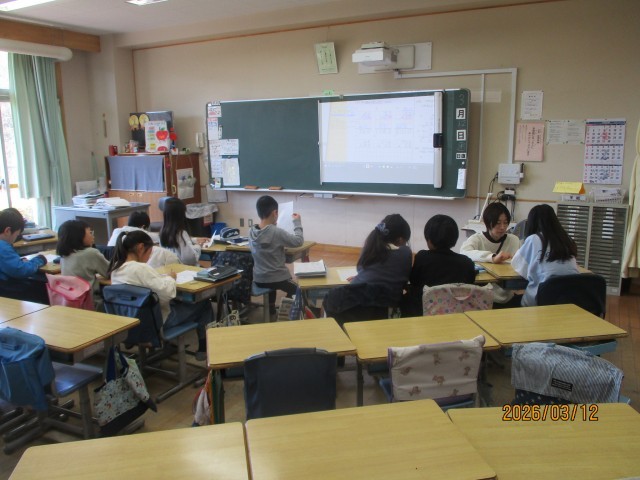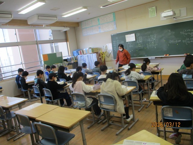 1・2組 算数少人数 かけ算の筆算練習を各クラスでしているところ。